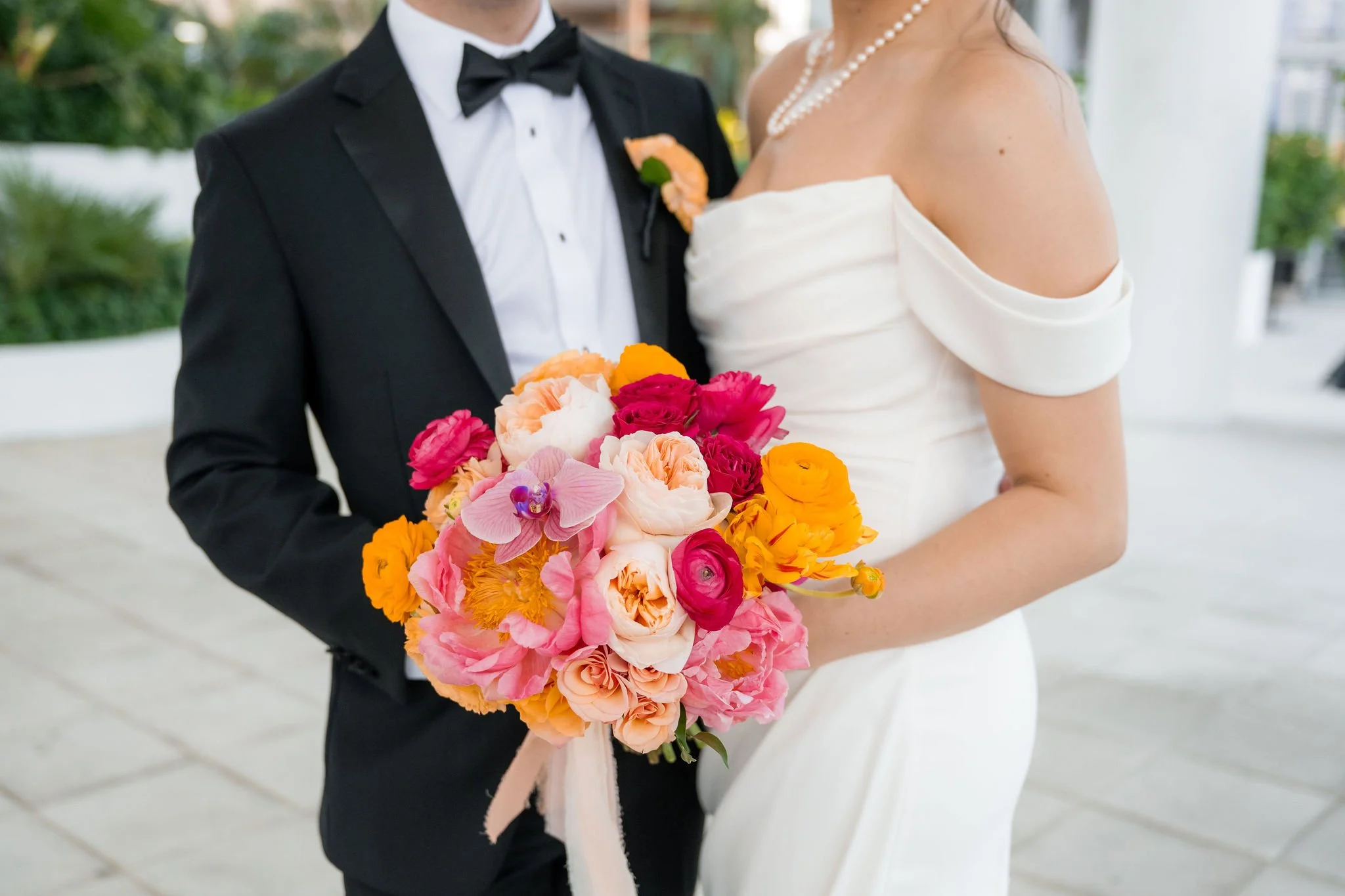 Held at the lovely Westin Sarasota, the venue offered a picturesque backdrop that complemented our floral arrangements beautifully. The luxurious space was transformed into a vivid tableau with flowers that echoed the day’s theme of vibrant love. SRQ Entertainment added a melodious charm with their skilled violinist, enhancing the atmosphere with beautiful music that resonated with the couple’s intimate moments.
